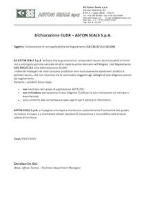 I sistemi di tenuta per fluidi ad alta e bassa pressione sono componenti vitali degli impianti oleodinamici e sono considerati dagli utilizzatori finali come “componenti critici ”. Ciò ha portato alla applicazione di severe regole di controllo sulla qualità intrinseca di questi prodotti indipendente dalle norme nazionali, internazionali o dei grandi costruttori. AS ASTON SEALS S.p.A. per meglio confrontarsi su un mercato molto competitivo e per fornire un prodotto sempre più rispondente alle richieste dei clienti, considera come elementi prioritari e strategici di gestione, la Garanzia della Qualità ed il miglioramento continuo dell’efficacia del sistema di gestione per la qualità. Per questo motivo siamo certificati secondo la norma UNI EN ISO 9001:2015.